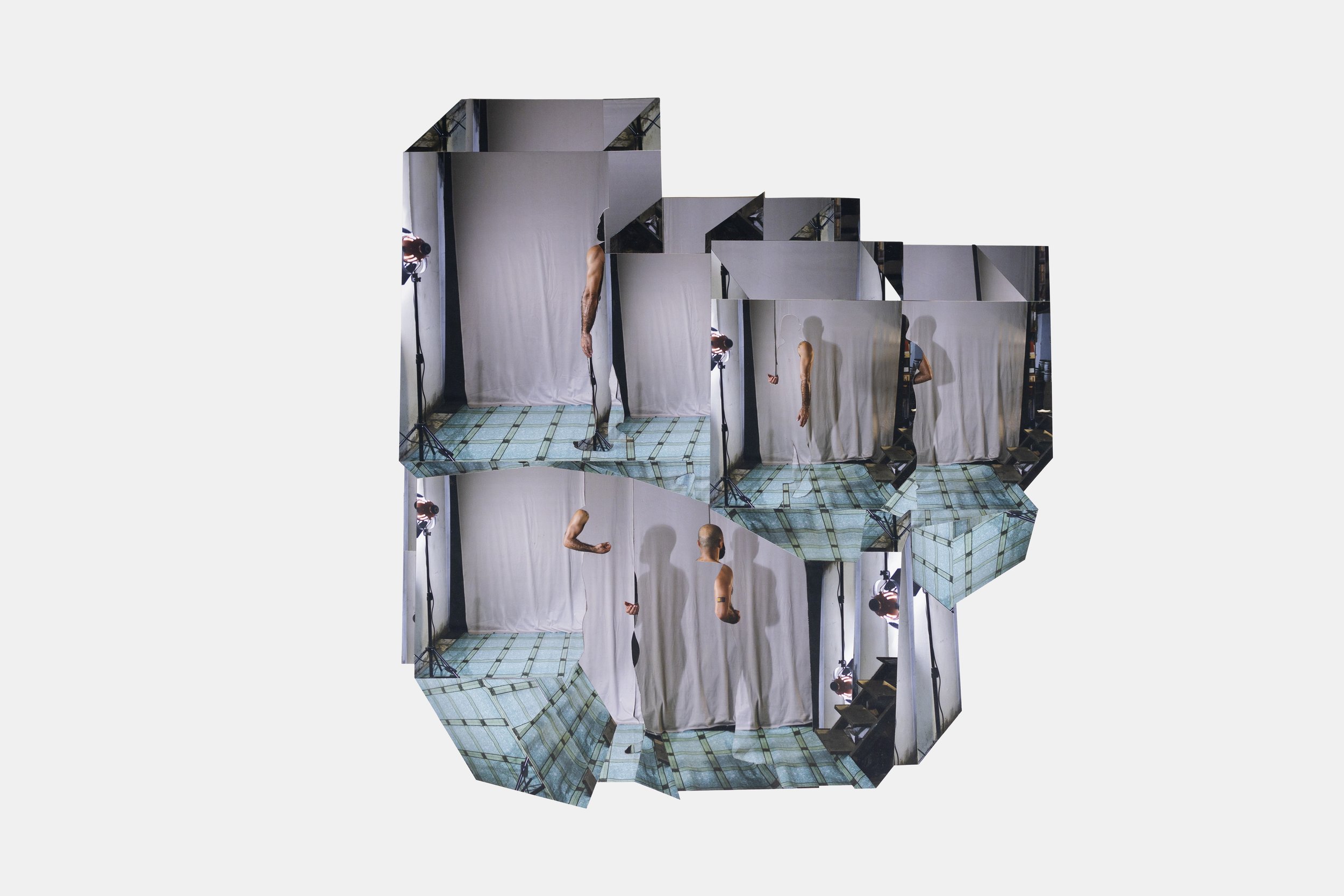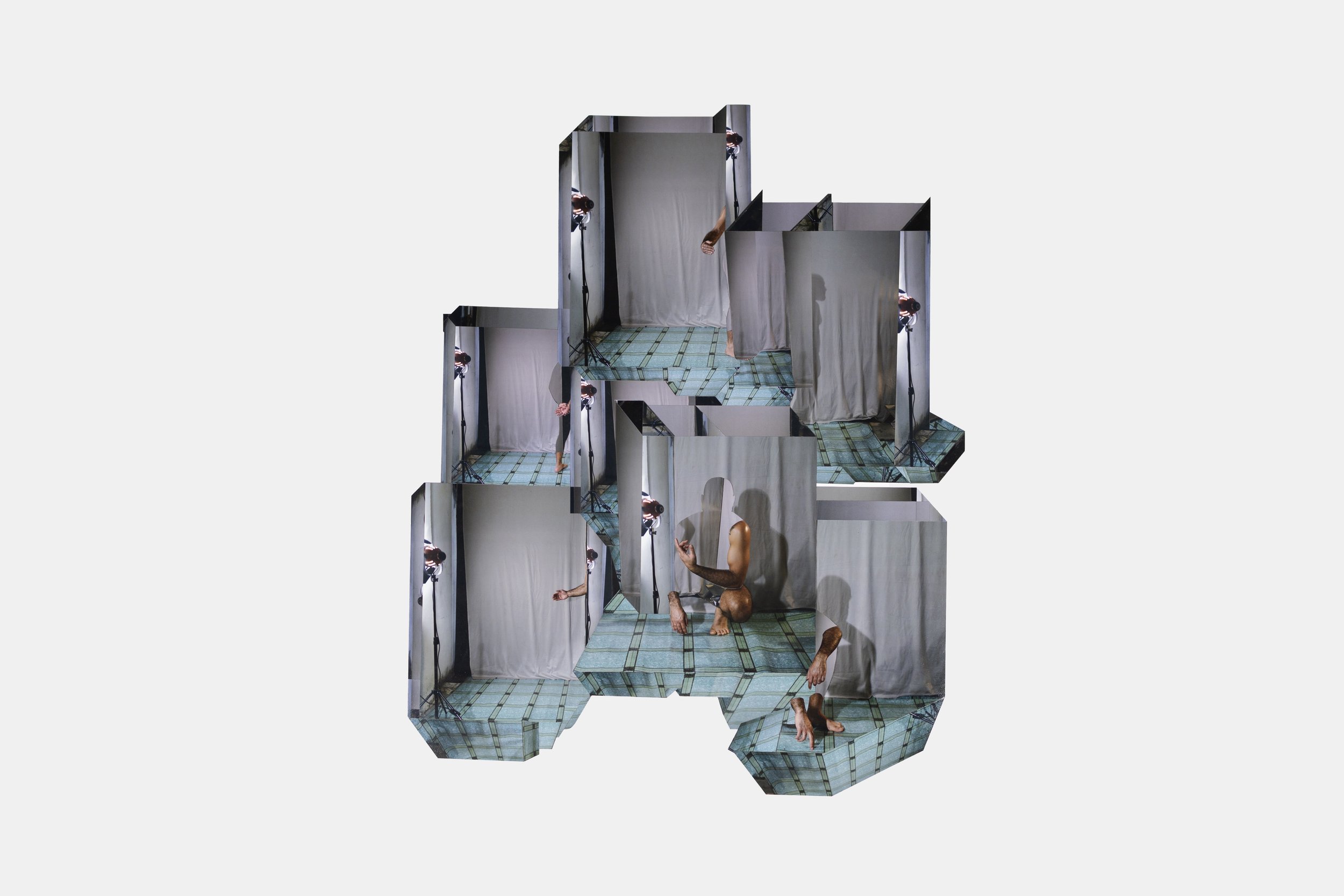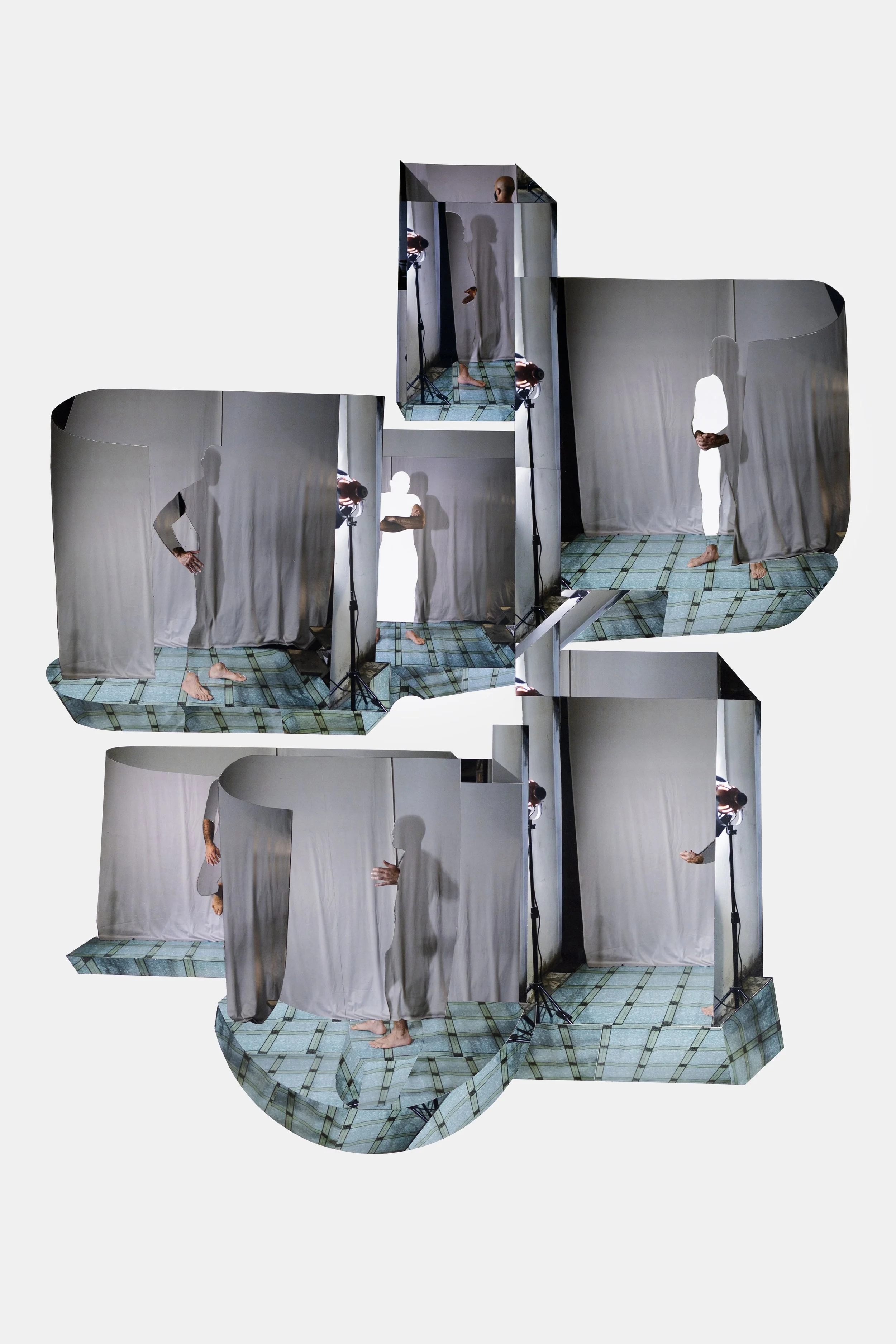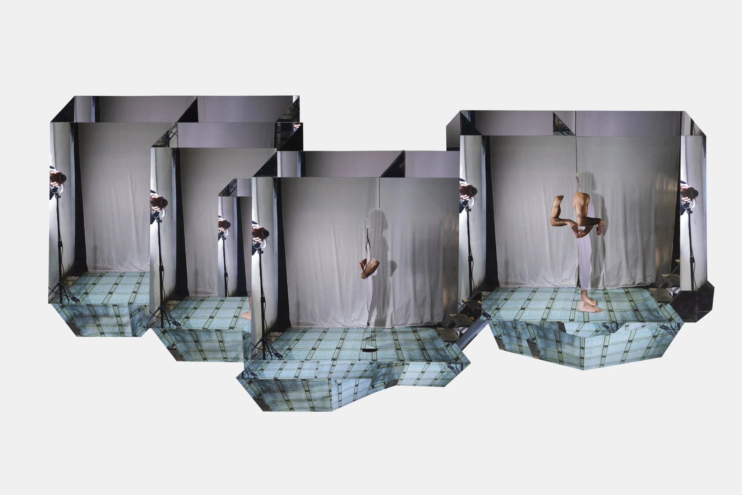 In this work, the artist re-enacts his father’s postures from archival images used in quickly but carefully cross to the other side, (2020), photographing each pose from four directions—front, back, left, and right—approaching photography as a sculptural form that can be encountered from multiple viewpoints. Engaging with the colonial history of photography in Africa, the work attempts to collapse these histories through the body, using studio photography to negotiate absence as a form of presence. By removing clear markers of identity and leaving only gestures of hands and feet, the body becomes an embodied archive, carrying memory, history, and inherited structures of power. The work reflects on visibility, access, and the gaze, creating images that resist full access and instead exist between political and spiritual space, fragmentation and structure.
