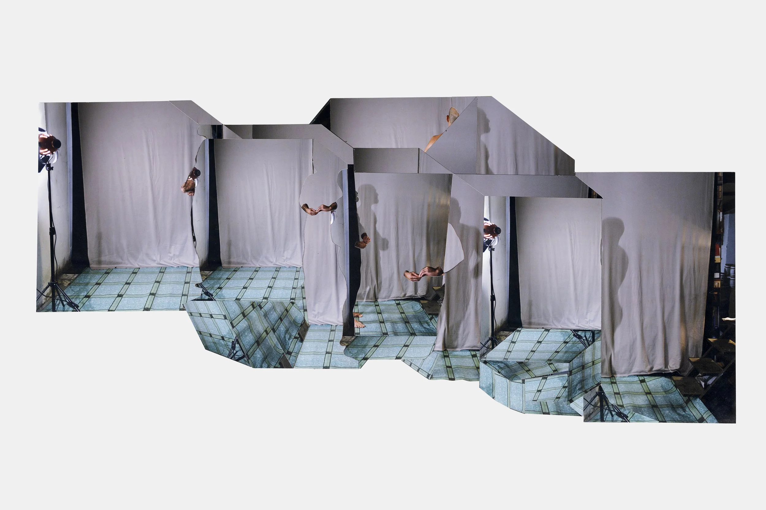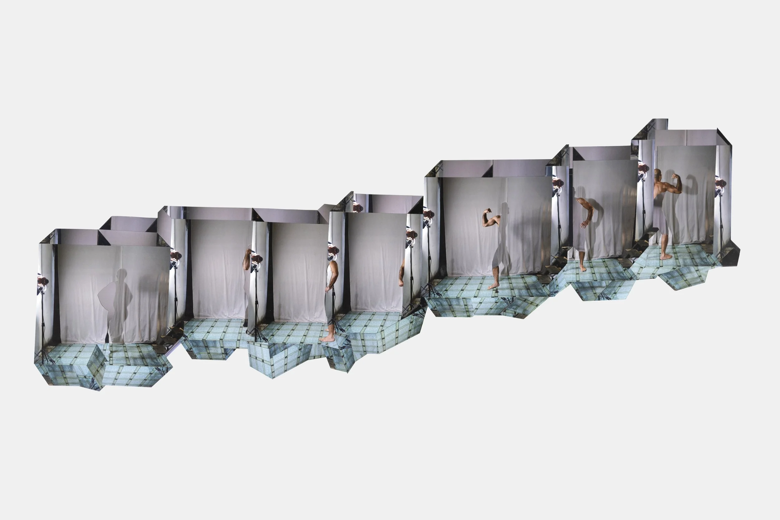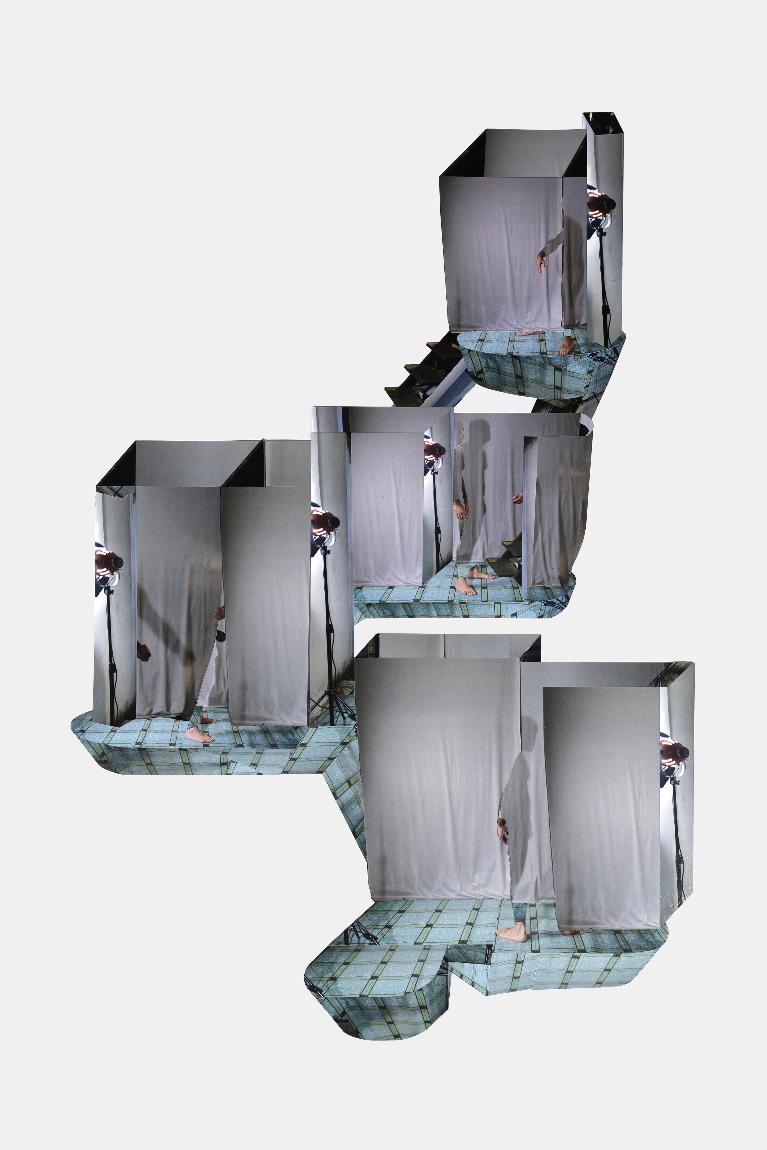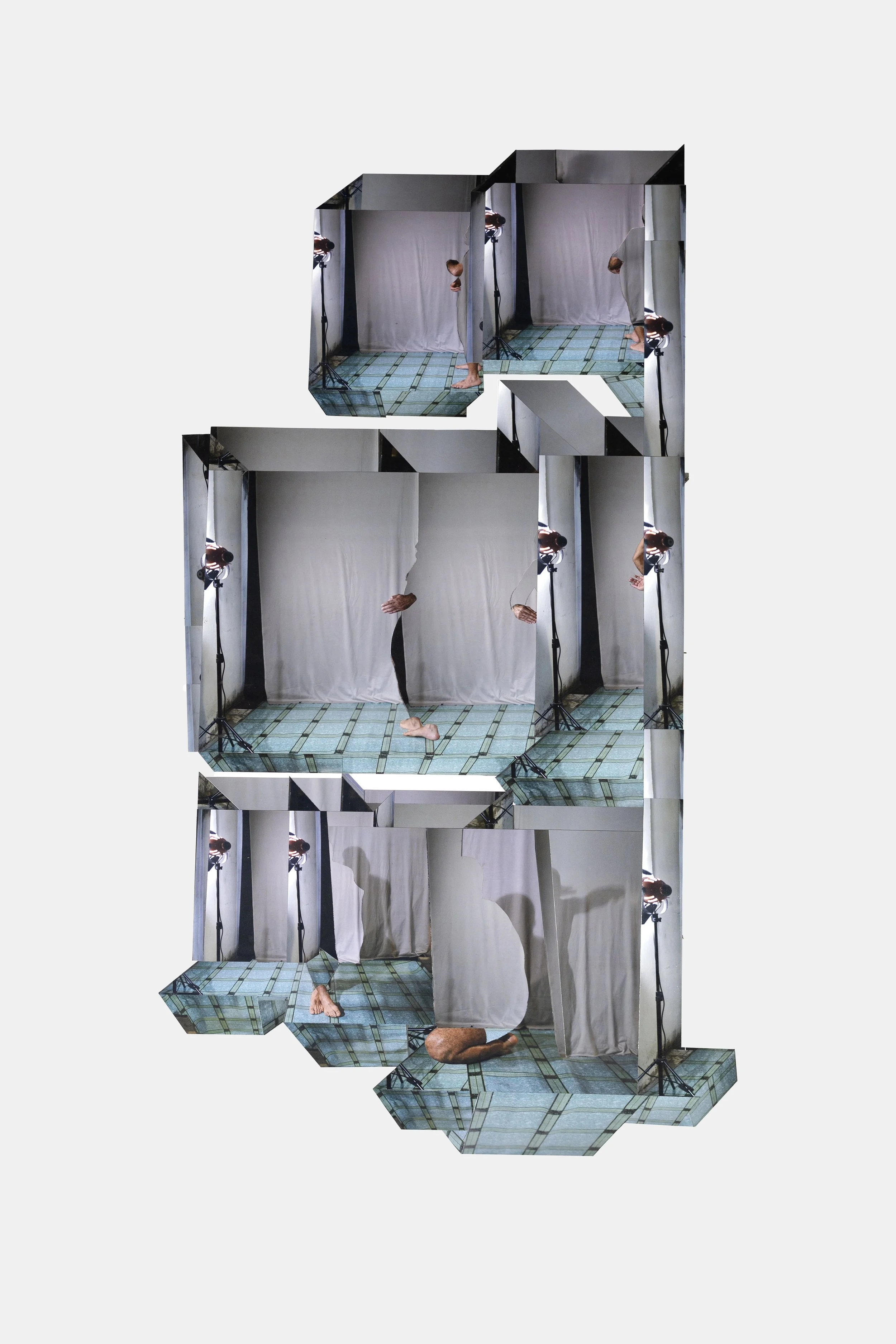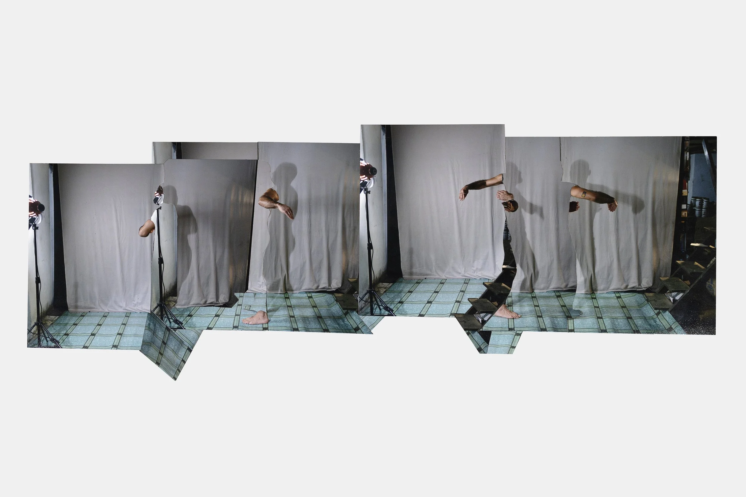 In this work, the artist re-enacts his father’s postures from archival images used in quickly but carefully cross to the other side, (2020), photographing each pose from four directions—front, back, left, and right—approaching photography as a sculptural form that can be encountered from multiple viewpoints. Engaging with the colonial history of photography in Africa, the work attempts to collapse these histories through the body, using studio photography to negotiate absence as a form of presence. By removing clear markers of identity and leaving only gestures of hands and feet, the body becomes an embodied archive, carrying memory, history, and inherited structures of power. The work reflects on visibility, access, and the gaze, creating images that resist full access and instead exist between political and spiritual space, fragmentation and structure.